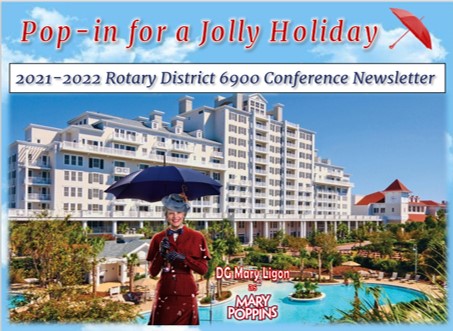 By Mary Ligon We are 22 days away from our next opportunity to connect in person! This Rotary year has continued to be one of adapting to the uncertainty of what's next with the pandemic. What has not changed, what is certain is our vision that together, we see a world where people unite and take action to create lasting change - across the globe, in our communities, and in ourselves. While I love that technology has allowed us to stay connected and be flexible to meet differing needs, I truly look forward to our Jolly Holiday - celebrating our progress, exchanging ideas, having fun and fellowship with you in person! Conference co-chairs PDG Court and PAG Stephanie have created a “practically perfect” event of learning, sharing, recognition and fun. Read all about the Conference below and be sure to register! As we get ready to meet in Sandestin, there's work to do and a lot to celebrate. Take a look! [more] |