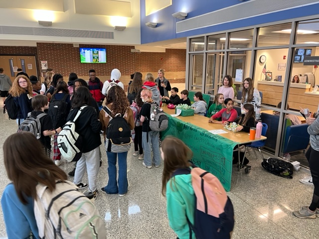 By Becky Stone The Crabapple Middle School Interact Club wanted to have a candy sale to benefit charity. Led by President Elle Rocco, students discussed options and made decisions on what candy to order, quantities, and dates for the sale. They voted to call it "Luck Sale" and hold it the week of St. Patrick's Day - with profits split between Children’s Hospital and the Atlanta Humane Society. [more] |